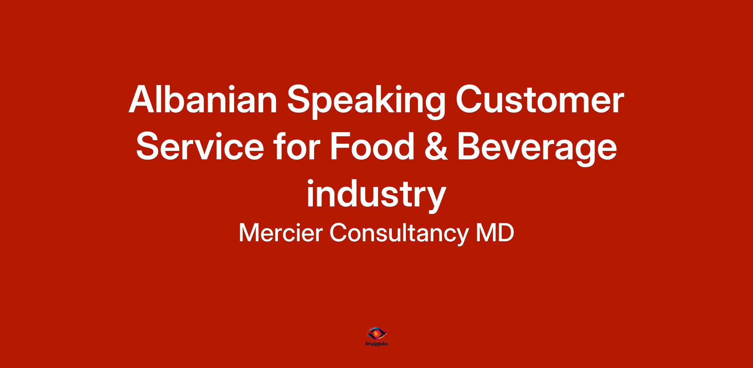 DescriptionMercier Consultancy MD is excited to announce an opening for Albanian Speaking Customer Service Representatives in the Food & Beverage industry. This position offers a unique opportunity for individuals who are enthusiastic about customer service and possess a passion for food and beverage products. As a representative, you will engage with customers, helping them with inquiries and ensuring they enjoy a positive experience with our services and products.