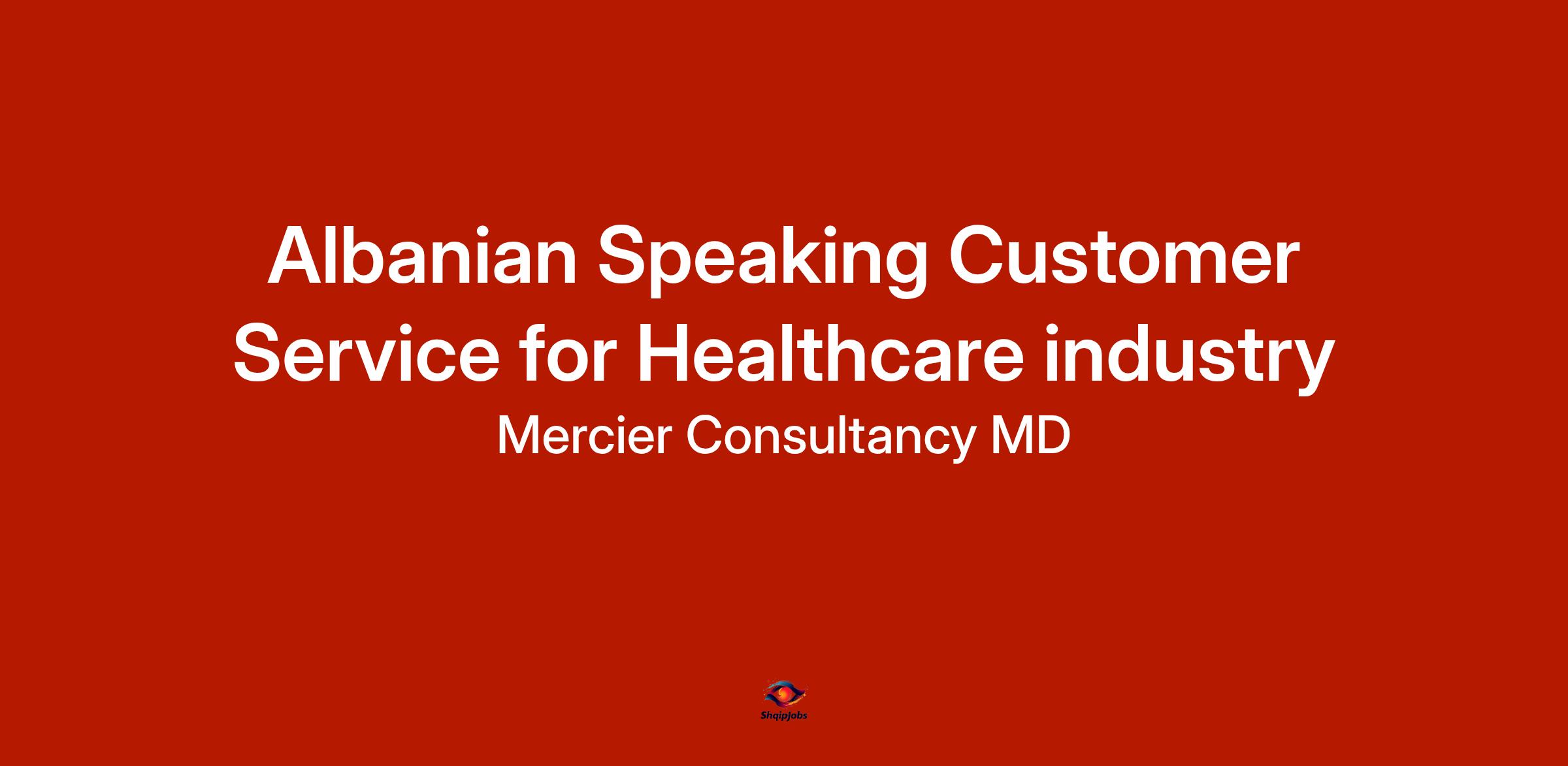 DescriptionMercier Consultancy MD is excited to announce an opening for Albanian Speaking Customer Service Representatives in the healthcare industry. This role presents a fantastic opportunity for candidates who are passionate about providing compassionate and informative support to patients and healthcare providers. As a part of our dedicated team, you will assist Albanian-speaking clients in navigating their healthcare needs and services.